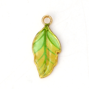 Zinklegierung Charms Blätter Vergoldet Grün & Gelb Emaille