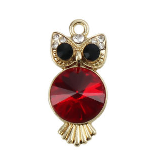 Zinklegierung & Glas Charms Eule KC Vergoldet Rot/blau Rund Schwarz Strass Facettiert