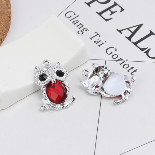 Zinklegierung Anhänger Eule Silberfarbe Schwarz & Rot Strass 3cm x 2cm1 Stk