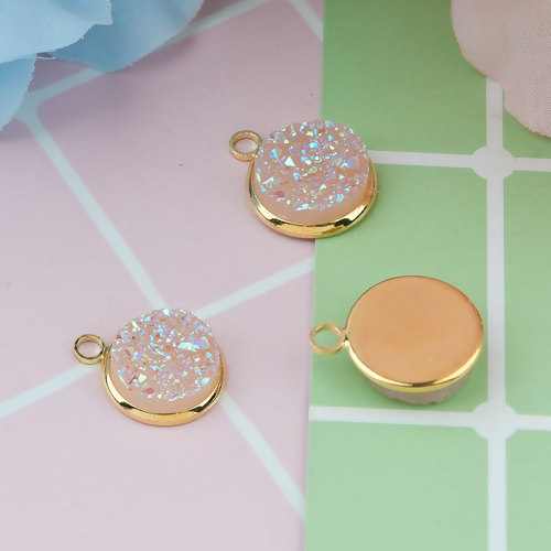 Kupfer & Harz Druzy Charms Rund Vergoldet Helllila, 18mm x 14mm