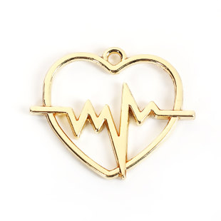 Zinklegierung Anhänger Herz Vergoldet Medizinisches Elektrokardiogramm 30mm x 25mm