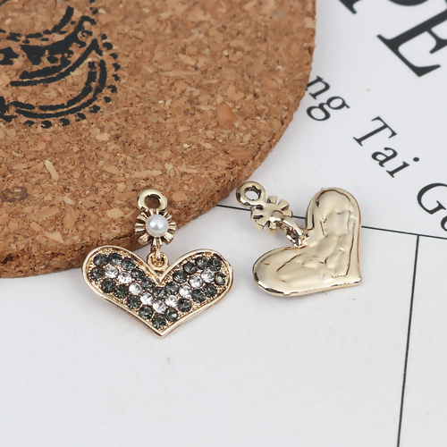 Zinklegierung Micro Pave Charms Herz Vergoldet Grau & Transparent Strass 22mm x 20mm