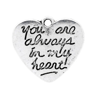 Zinklegierung Charm Anhänger Valentine Herz Antiksilber Message "you are always in my heart"