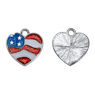 Zinklegierung Charms Herz Versilbert Weiß & Rot Staatsflagge von USA Emaille 18mm x 17mm,1 Stk