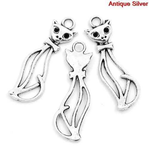 Zinklegierung Charm Anhänger Tier Katze Antiksilber, 34mm x 11mm