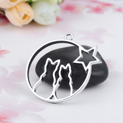Zinklegierung Märchen Kollektion Offene Lünette Anhänger für Harz Katze Versilbert Stern
