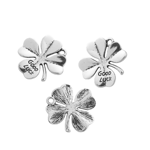 Zinklegierung Charms Anhänger Vierblättriges Kleeblatt Antiksilber Message " GOOD LUCK " 29mm x 27mm