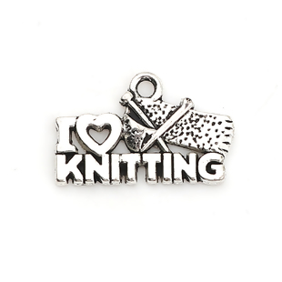 Zinklegierung Charms Herz Antiksilber Message " I Love Knitting "