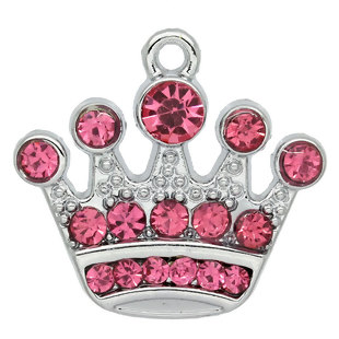 Legierung + Strass Anhänger Kaiserkrone Silberfarbe, mit Rosa Strass