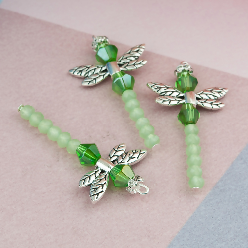 Zinklegierung & Glas Anhänger Libellen Antiksilber,  4.3 / 4.5 cm