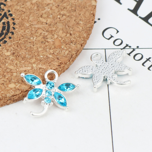 Zinklegierung Insekt Charms Schmetterling Silberfarbe Saphir Strass 21mm x 18mm