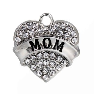 Zinklegierung Charm Anhänger Herz Silberfarbe Message " Mom " mit Strass