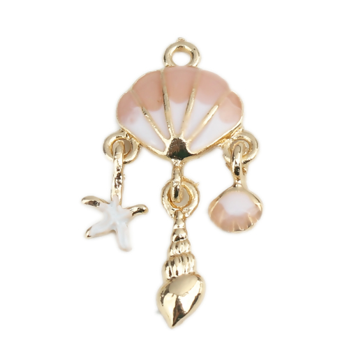 Zinklegierung Emaille Anhänger Muschel Vergoldet Rosa 34mm x 18mm1 Stk