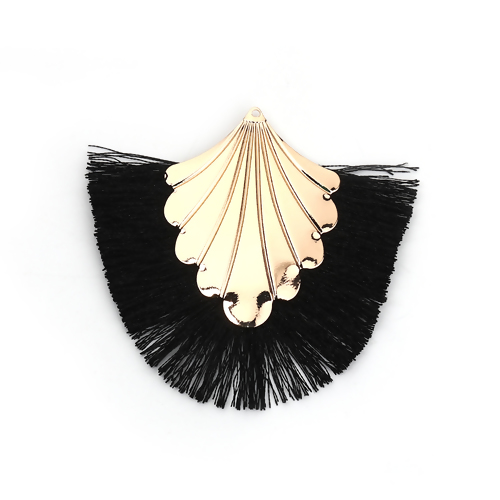 Terylen Quaste Anhänger Muschel Vergoldet Schwarz