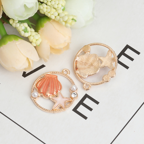 Zinklegierung Ozean Schmuck Charms Muschel Vergoldet Orange Seesterne Transparent Strass Emaille 28mm x 25mm1 Stk