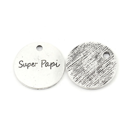 Zinklegierung Charms Rund Antiksilber Message "Super Papi",  20mm