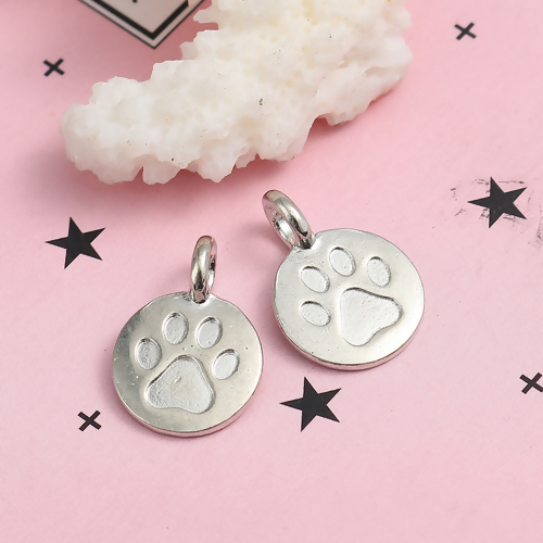Zinklegierung Charms Hundetatze Silberfarbe Rund 16mm x 11mm