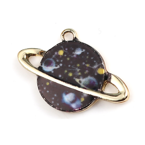 Zinklegierung Charms Planet Vergoldet Schwarz Emaille 24mm x 16mm