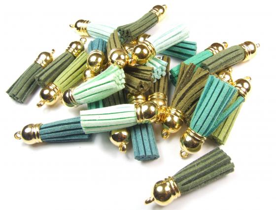 Quasten in Wildlederoptik, ca. 4 cm, grüntöne, Kappe goldfarben