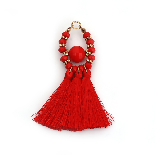 Terylen & Acryl Quaste Anhänger Tropfen Vergoldet Rot Perlen ca. 8cm x 6cm