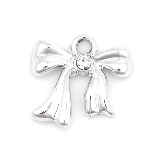 Zinklegierung Charms Fliege Silberfarbe Transparent Strass 18mm x 17mm