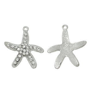 Ozean Schmuck Legierung + Strass Charm Anhänger Seesterne Silberfarbe Transparent Strass 28mm