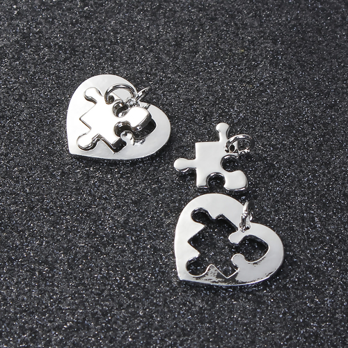 Zinklegierung Puzzle Charms Herz Silberfarbe 24mm x 24mm 18mm x17mm1 Set