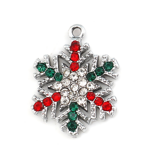 Zinklegierung Charms Weihnachten Schneeflocke Silberfarbe Transparent Strass