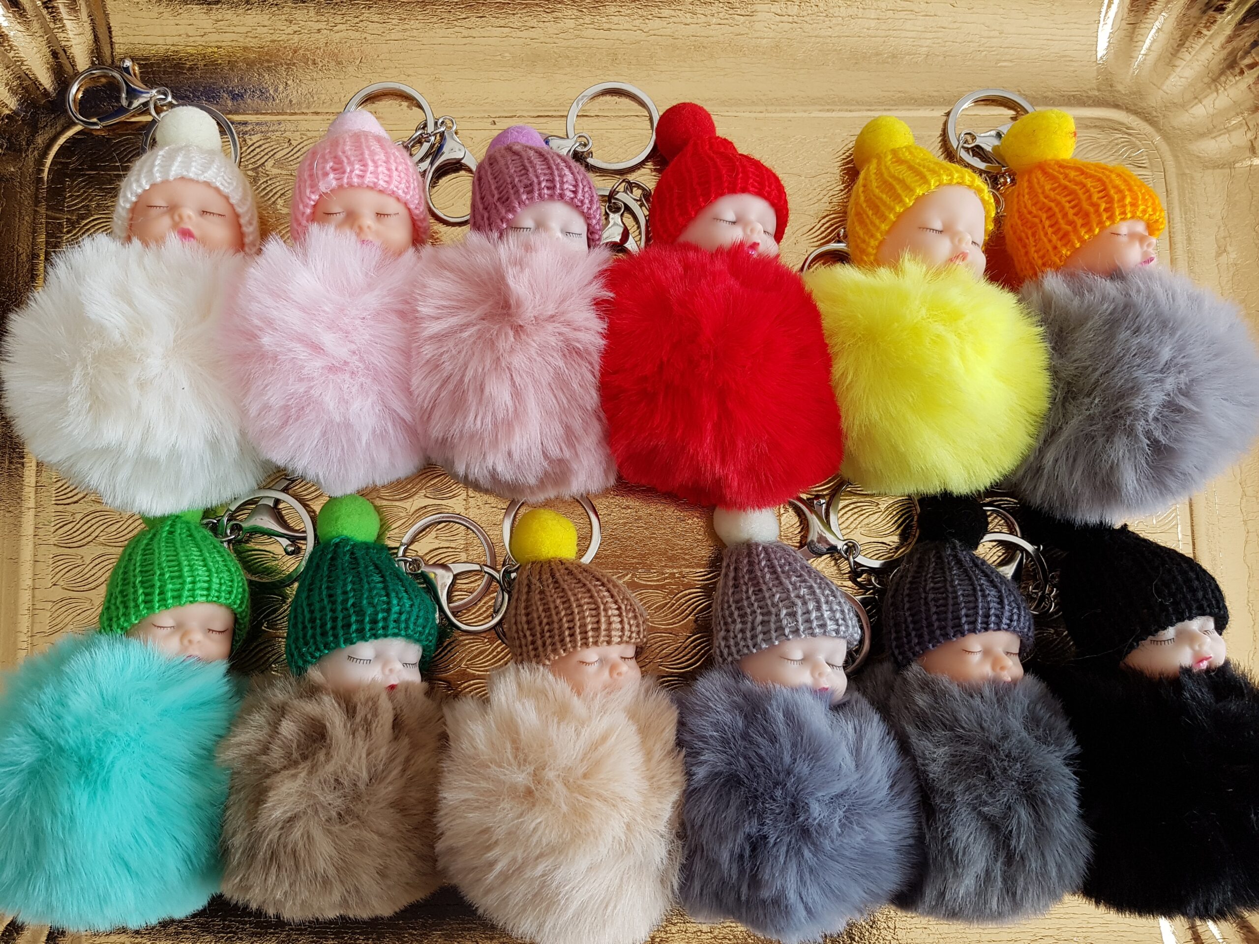 Baby-Bommel, kuschelweich (Kunstfell) u. Strickmütze