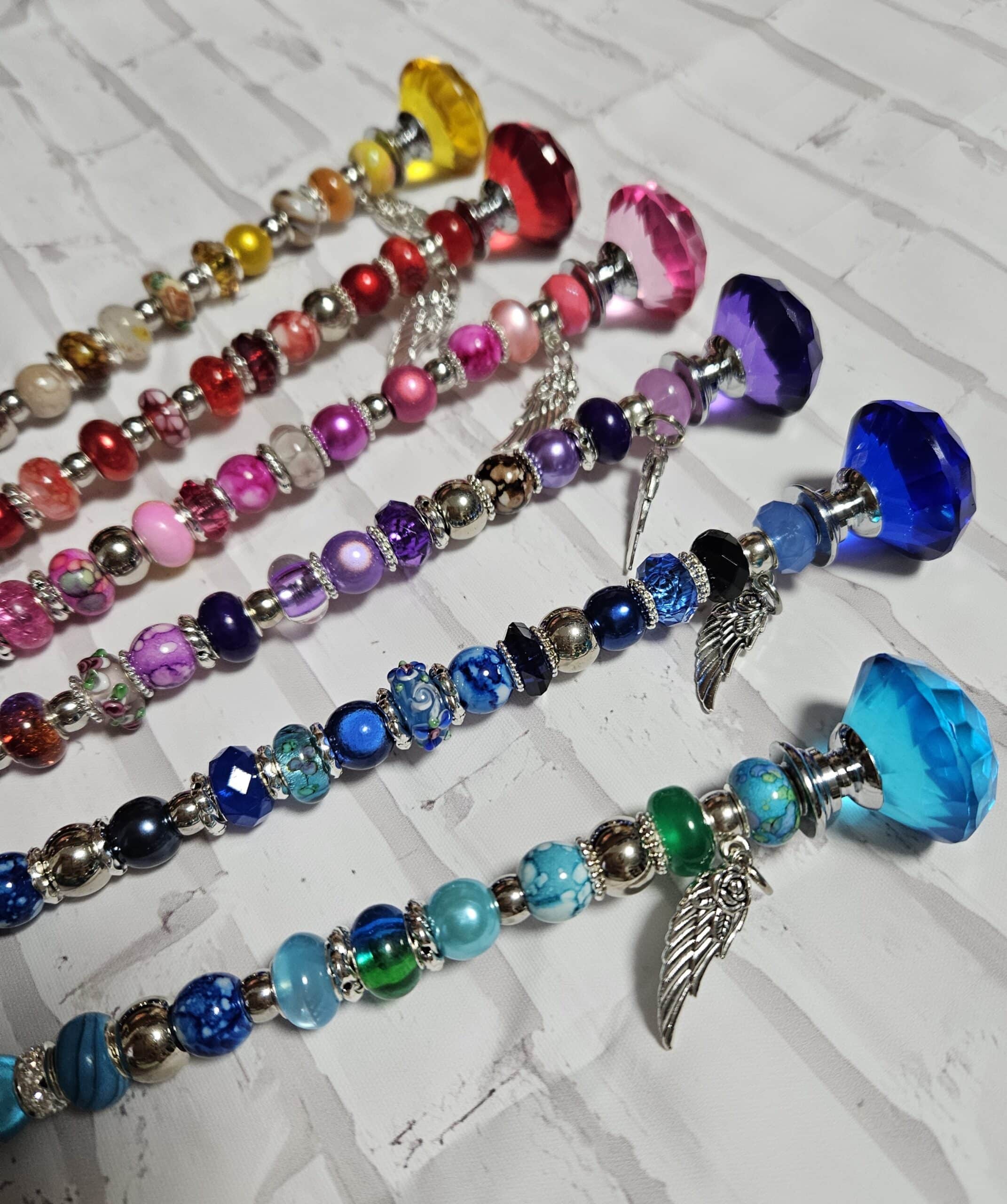 Metallstab mit div. Perlen und Flügelanhänger, ca. 42 cm